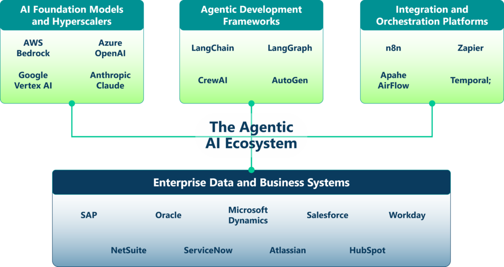 Building production-grade agentic AI for SAP environments requires understanding the core technology landscape. The ecosystem spans four essential layers that autonomous systems require.