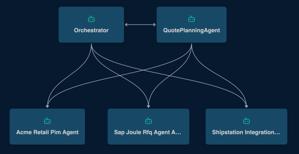 Agent Mesh was designed specifically for this heterogeneous reality. Here’s how it solves the RFQ automation scenario and enables cross-platform agent coordination: