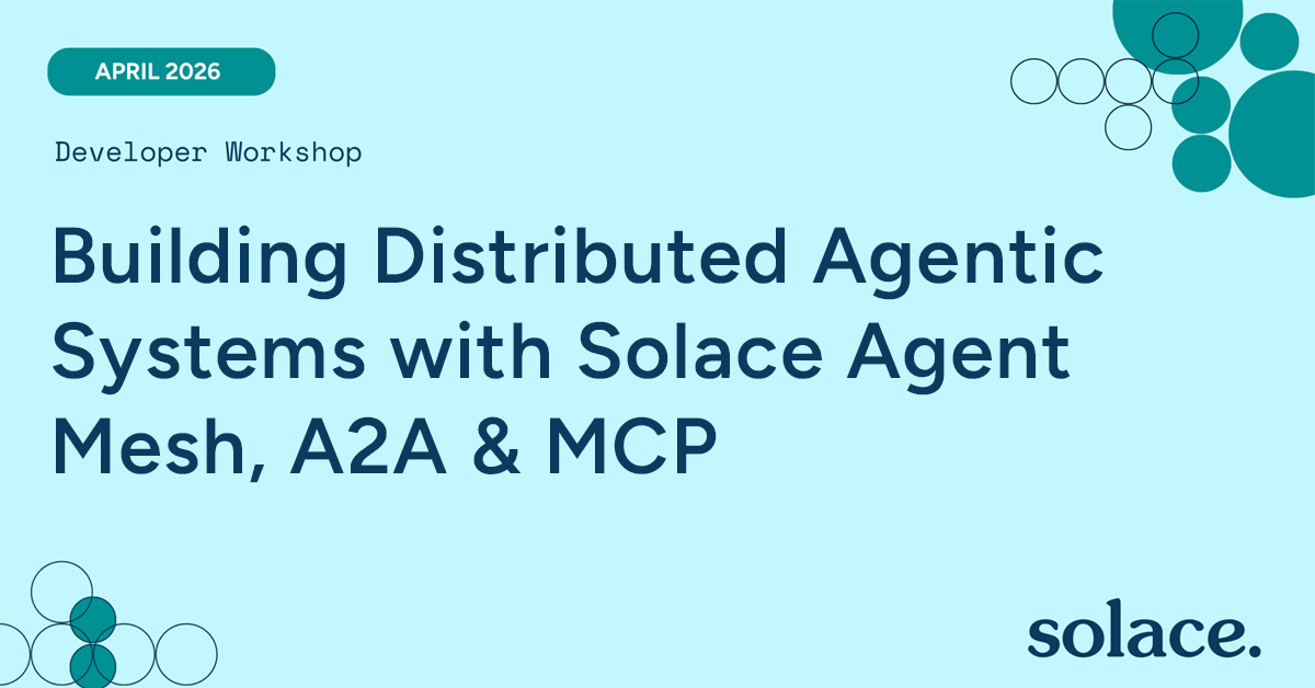 We are moving beyond static chatbots and siloed agents to a world of autonomous Agentic AI systems. For enterprise agents to be truly effective, they cannot exist in silos; they must interact in real-time and communicate across diverse platforms, and environments. In this hands-on virtual workshop, you’ll build and run agent-based AI systems using Solace Agent Mesh, Agent2Agent (A2A) protocol and Model Context Protocol (MCP). Whether you’re building agents with LangChain, Google ADK, Microsoft AutoGen, Strands Agents, or other frameworks we’ll explore how you can unify them into a cohesive AI ecosystem. You’ll also learn how to use MCP servers in Solace Agent Mesh to provide access to tools and data.