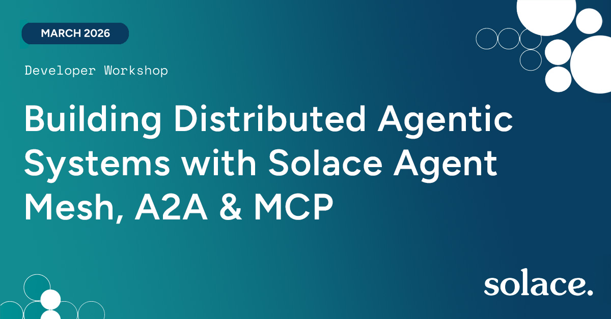 We are moving beyond static chatbots and siloed agents to a world of autonomous Agentic AI systems. For enterprise agents to be truly effective, they cannot exist in silos; they must interact in real-time and communicate across diverse platforms, and environments. In this hands-on virtual workshop, you’ll build and run agent-based AI systems using Solace Agent Mesh, Agent2Agent (A2A) protocol and Model Context Protocol (MCP). Whether you’re building agents with LangChain, Google ADK, Microsoft AutoGen, Strands Agents, or other frameworks we’ll explore how you can unify them into a cohesive AI ecosystem. You’ll also learn how to use MCP servers in Solace Agent Mesh to provide access to tools and data.