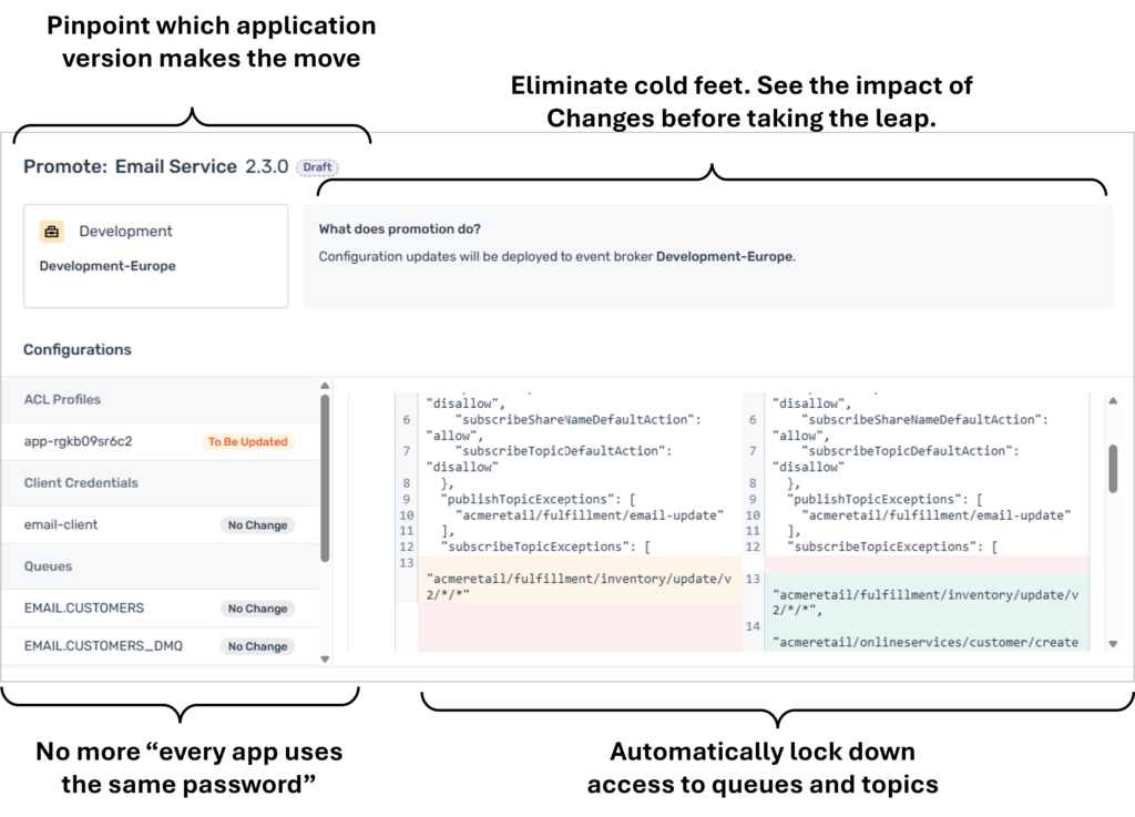 Together, self-service access, automated broker configuration, and CI/CD integration turn deployment from a manual, error-prone tasks into a predictable and controlled process that scales with your business.