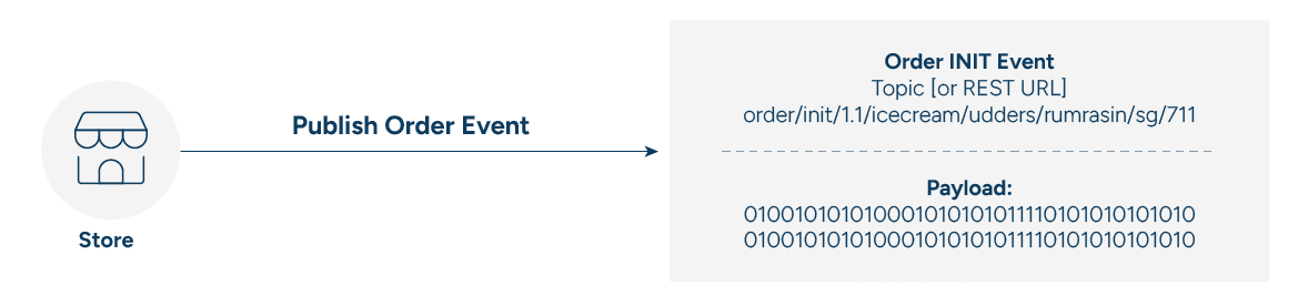 Let’s say a CPG company receives an order for a specific product—like a new SKU of energy bars—via a regional e-commerce partner in Southeast Asia. The company has structured its event topics to reflect key metadata like event type, product category, brand, region, and channel.