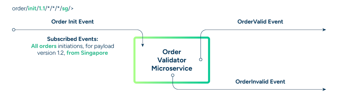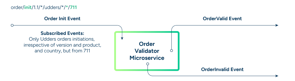 - Order validation services subscribe to order/init/1.1/> to catch all new orders across categories and regions.