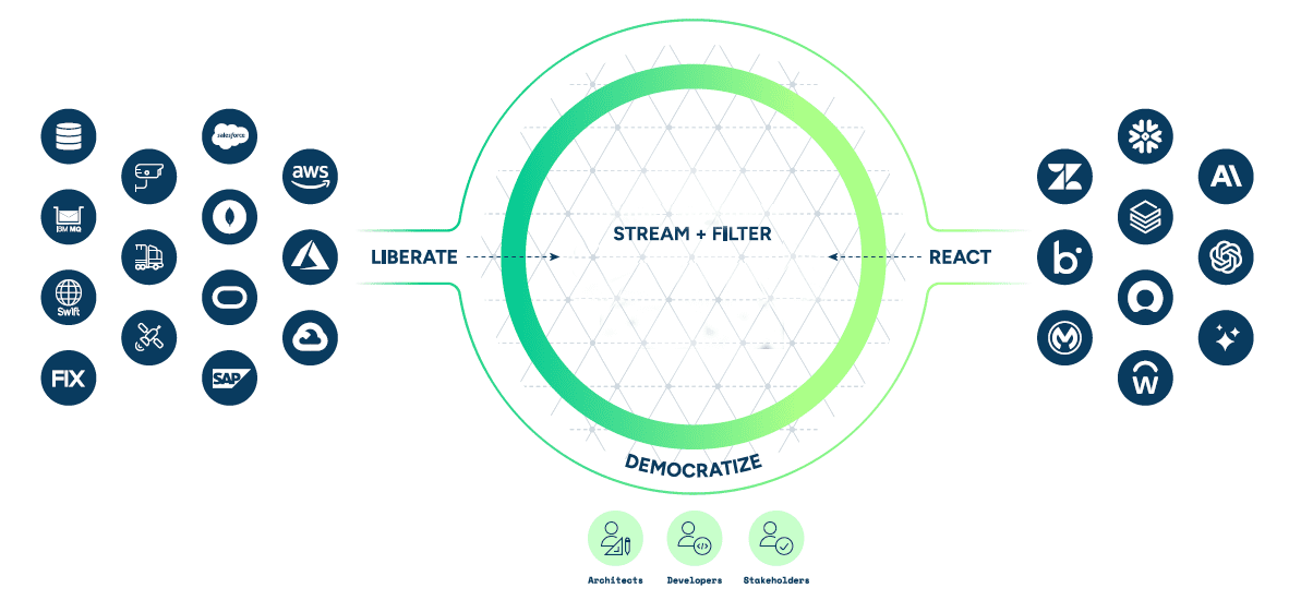 - Stream & Filter: Once liberated, data must flow across your organization. Use event brokers and intelligent routing to ensure each application, service, or team gets all of the data they need, when they need it.